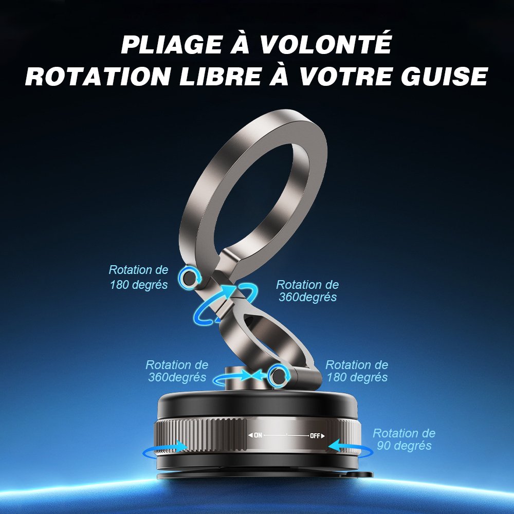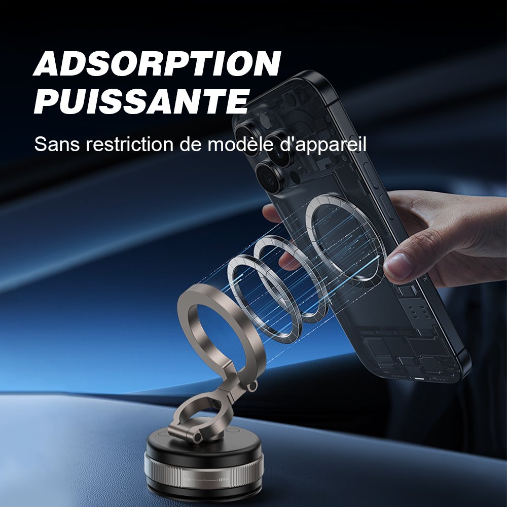 Nous utilisons le plastique ingénieré ABS de haute résistance et des matériaux en alliage de zinc. Après des tests rigoureux, nous garantissons que les supports sont durables et résistants. La conception de la version manuelle mécanique permet une rotation libre de 360 degrés, vous pouvez ajuster facilement l’angle avec une seule main. La forte pression d’adhérence allant de 18 kPa à 65 kPa, combinée avec un coussin antidérapant en silicone, permet de maintenir fermement le téléphone même sur les routes accidentées ou lors d’un freinage brutal, offrant une protection complète pour votre appareil.